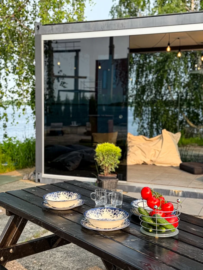Moderns, estētisks stikla namiņš chill-out stilā, kurā apvienota daba un komforts. Nāc atpūsties, uzgrilē vakariņas un baudi skatu uz upi neatkarīgi no laikapstākļiem. Iekštelpu un āra zona ļauj Tev būt tik tuvu dabai, cik vien vēlies.